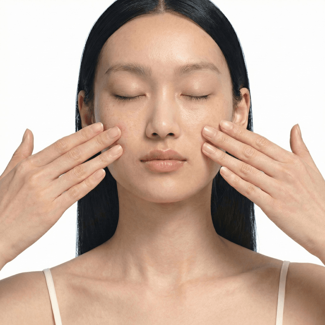その後、手のひらで軽く押さえて、肌になじませます。